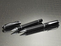 Hochwertiges Schreib-Set in edler Carbon-Optik mit 3D-Effekt. Schwarze Minen mit 0,5-mm-Strich, auswechselbar. Inkl. Etui.